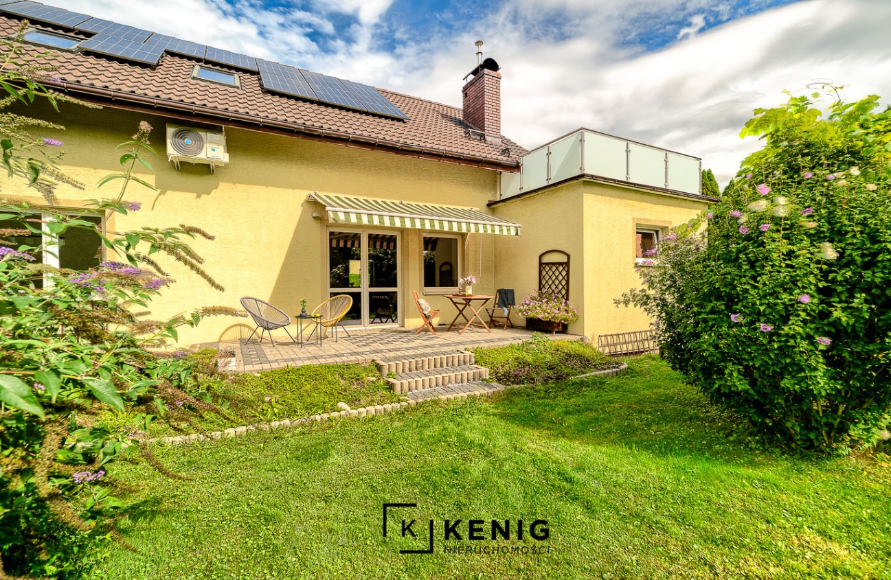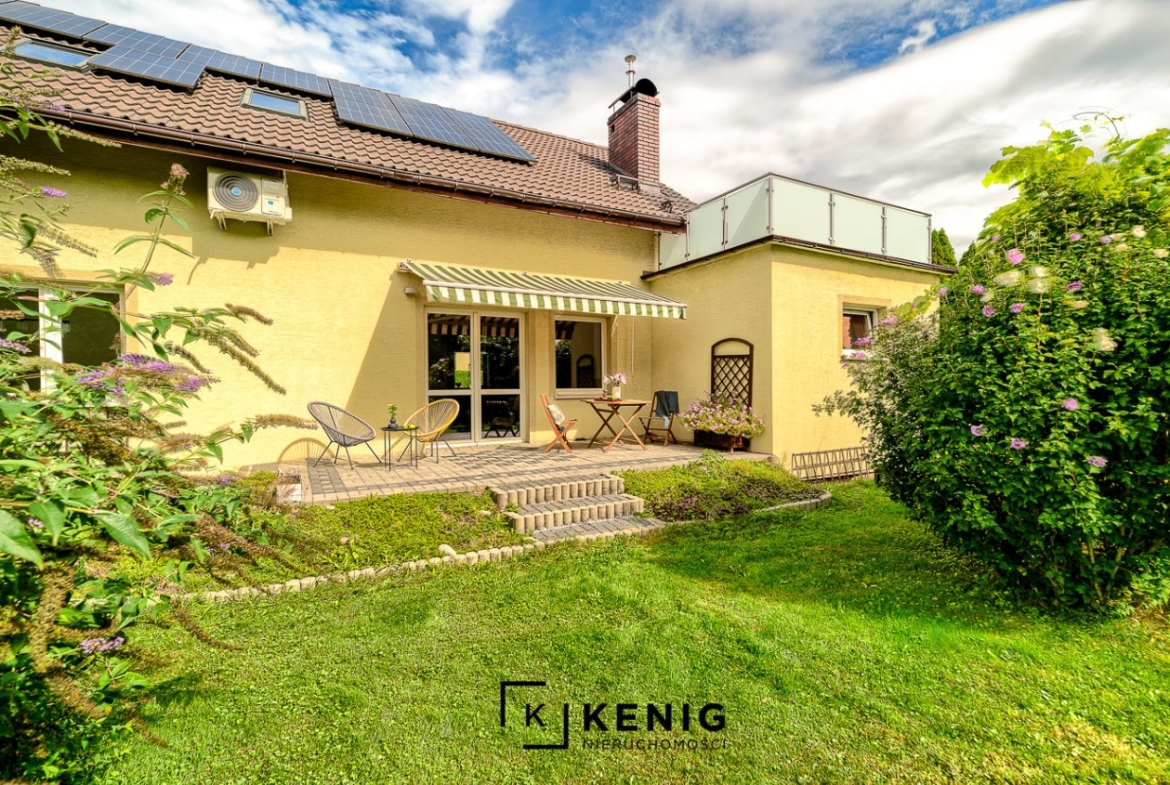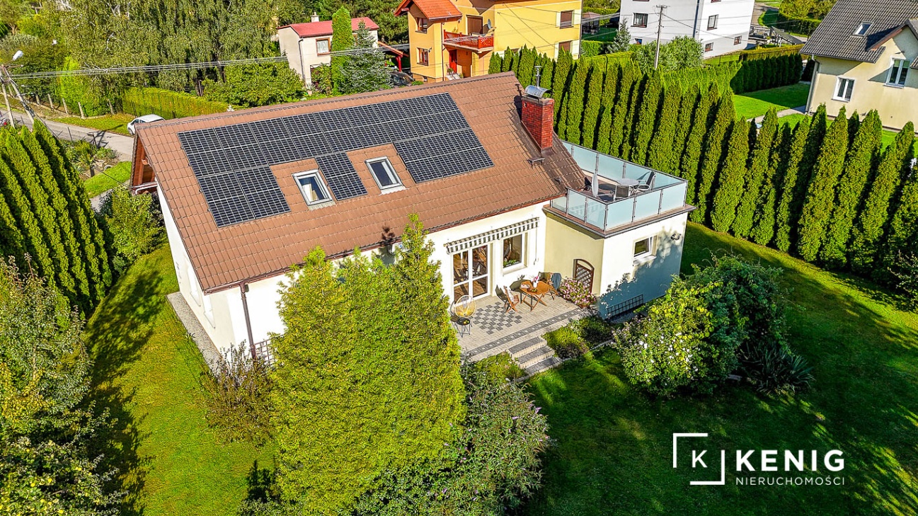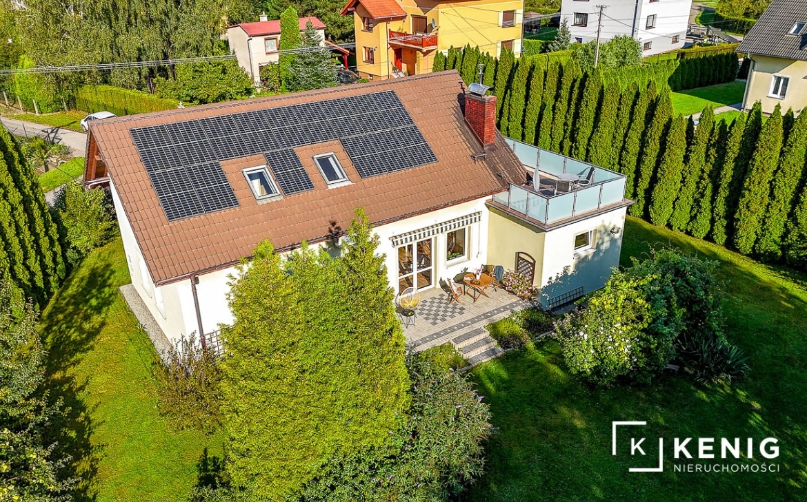 Budynek jest wyposażony w instalację fotowoltaiczną o mocy 5,5 kW (na starej, korzystnej umowie z Tauronem), stąd jego eksploatacja generuje niewielkie koszty. W centralnej części budynku właściciele zamontowali klimatyzację, która chłodzi w letnie dni, a w miesiącach przejściowych dogrzewa dom. System alarmowy firmy SATEL.