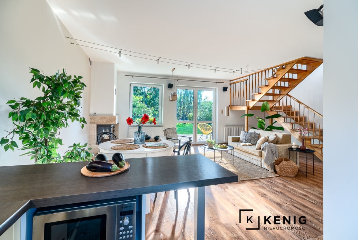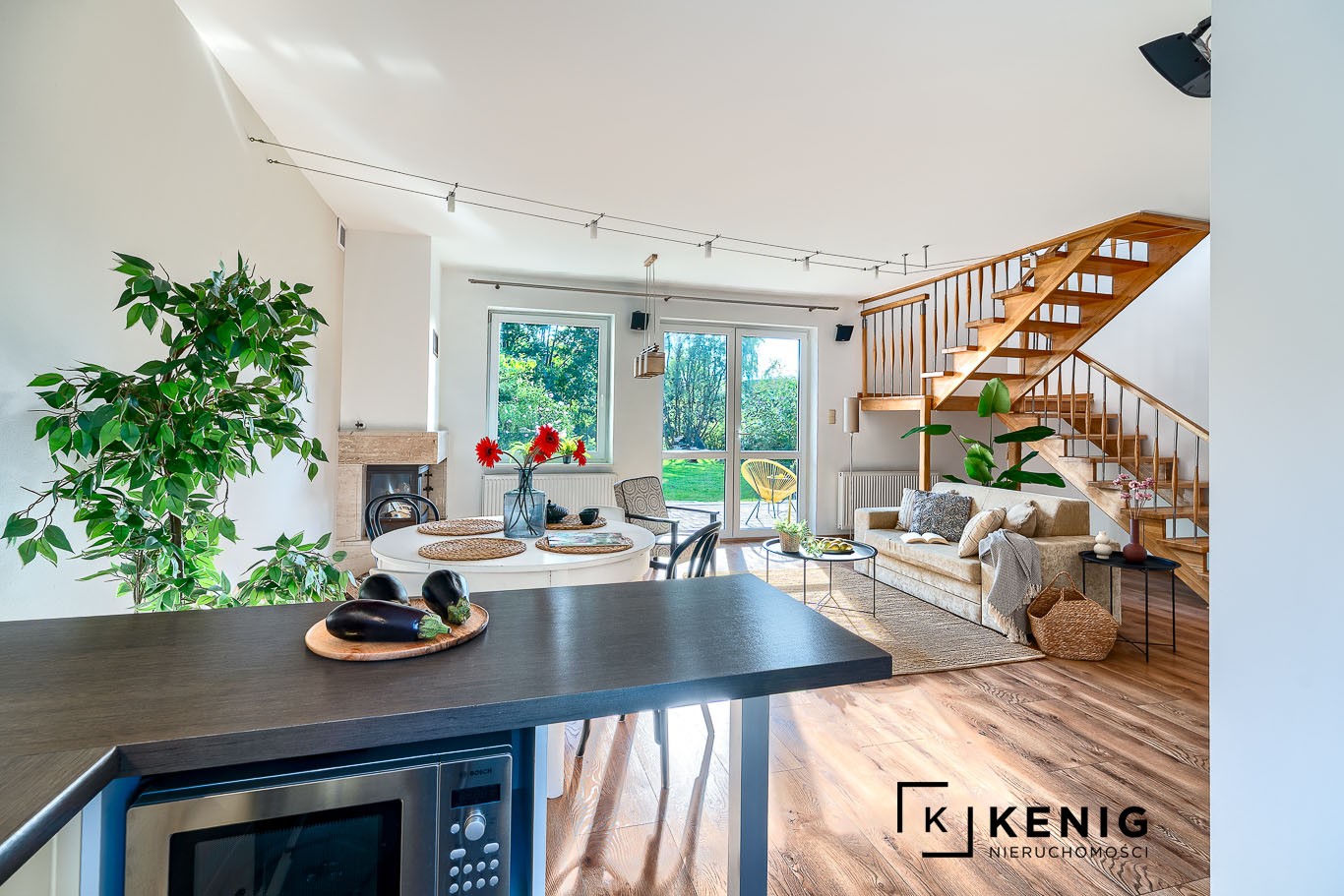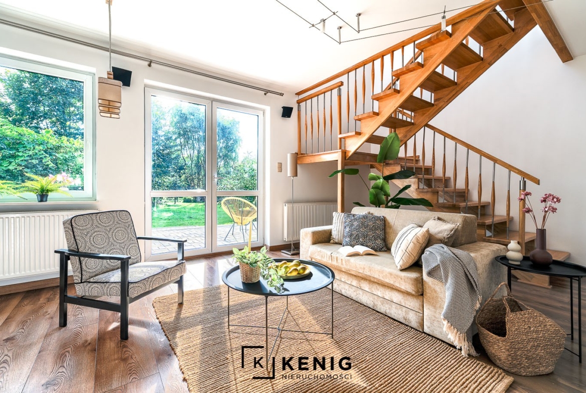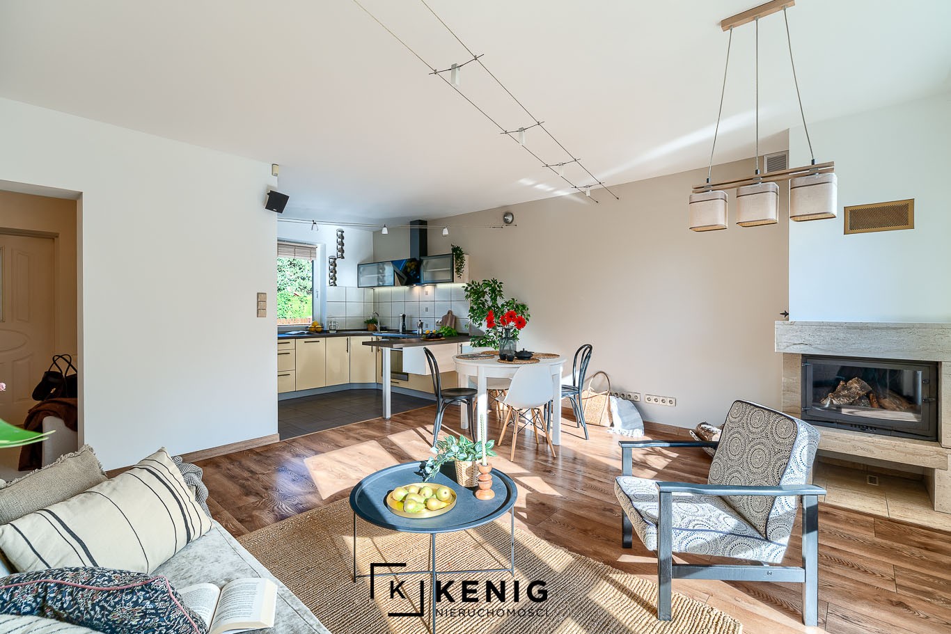 To niezwykle wygodny dom dla rodziny, która marzy o spokoju, jaki daje małe miasteczko, ale też potrzebuje dobrej komunikacji z większymi miastami. Duża działka, z wieloletnimi już nasadzeniami, zapewnia mieszkańcom mnóstwo intymności, a równocześnie jest doskonałym miejscem na ognisko ze znajomymi, ulubioną książkę na hamaku czy poranną kawę na tarasie pod markizą…