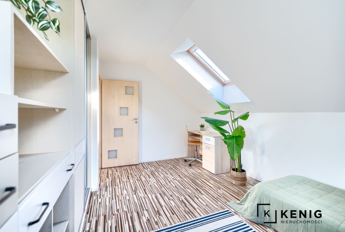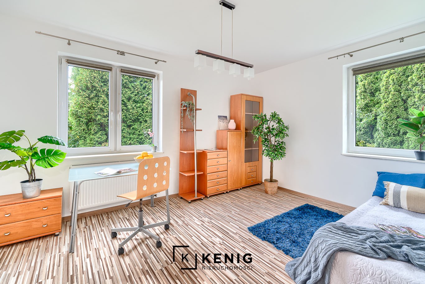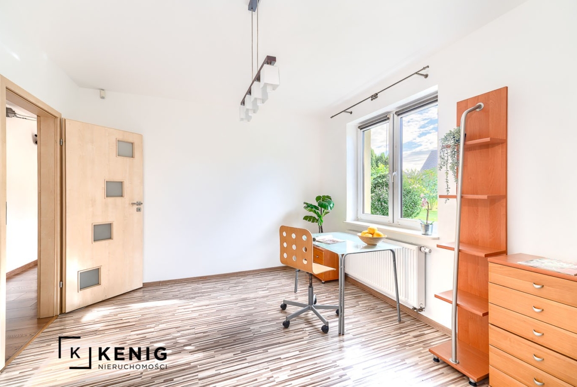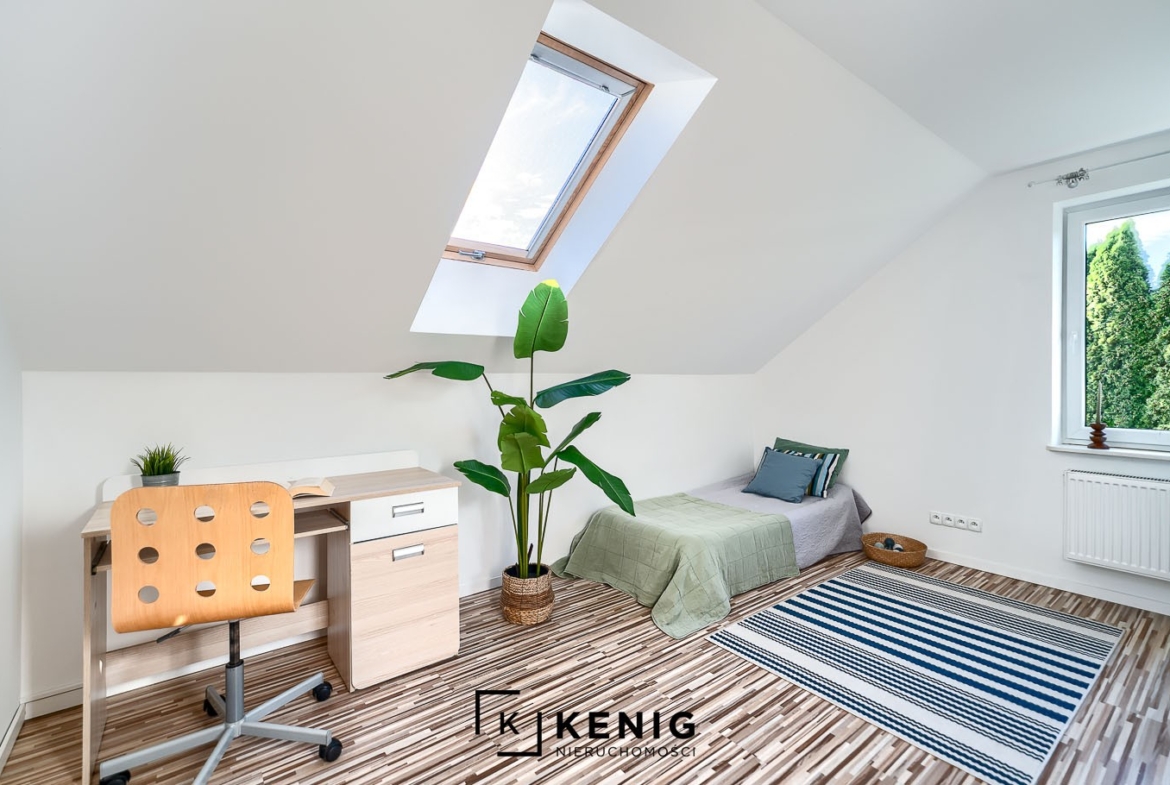 Otoczenie i komunikacja: W sąsiedztwie dominuje zabudowa jednorodzinna. Dom znajduje się blisko szkoły podstawowej (kilka minut spacerem), przedszkola czy boiska sportowego “Orlik”, z zewnętrzną siłownią. Niedaleko jest także przystanek autobusowy, skąd starsze dzieci mogą dojechać do szkół średnich w Kętach