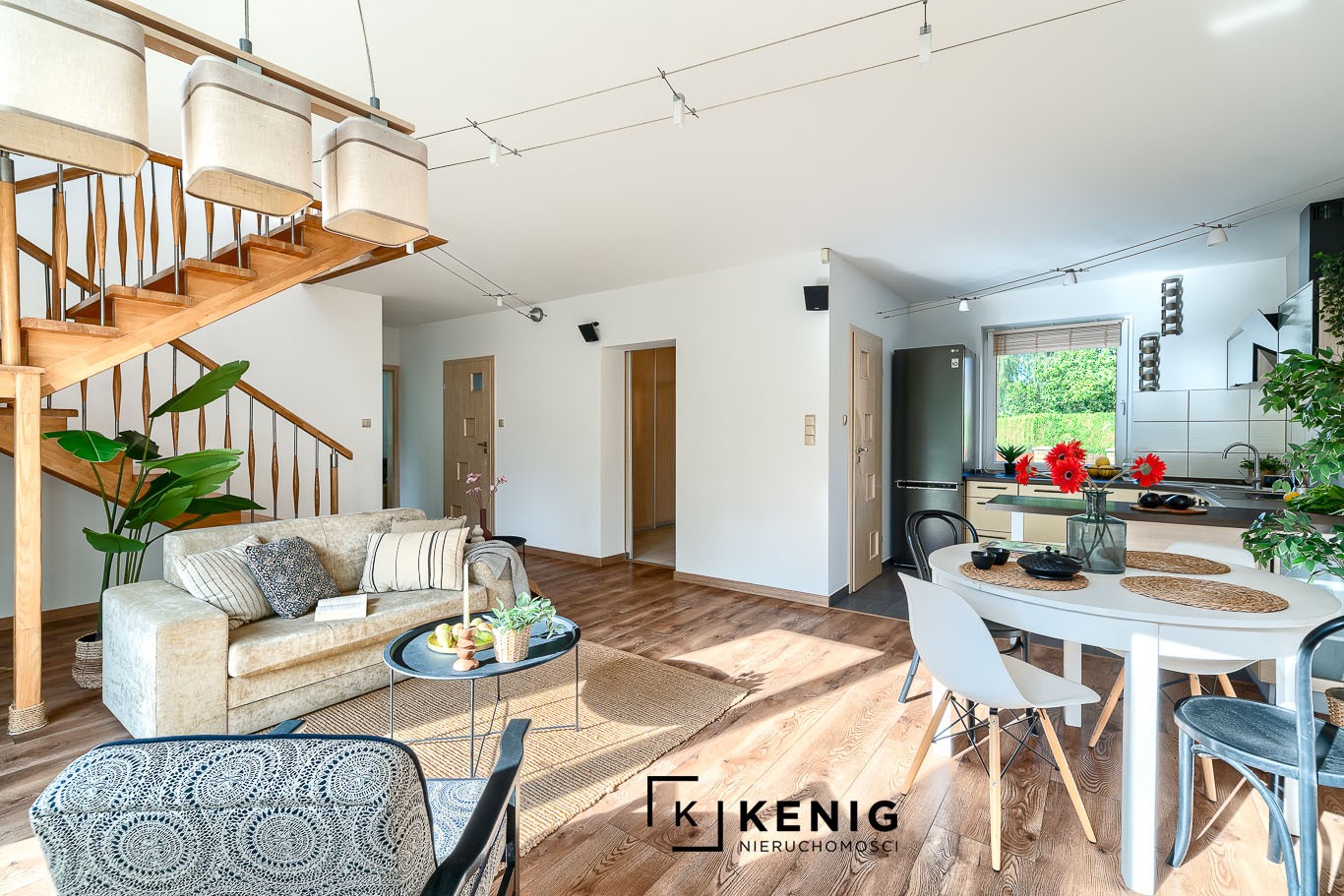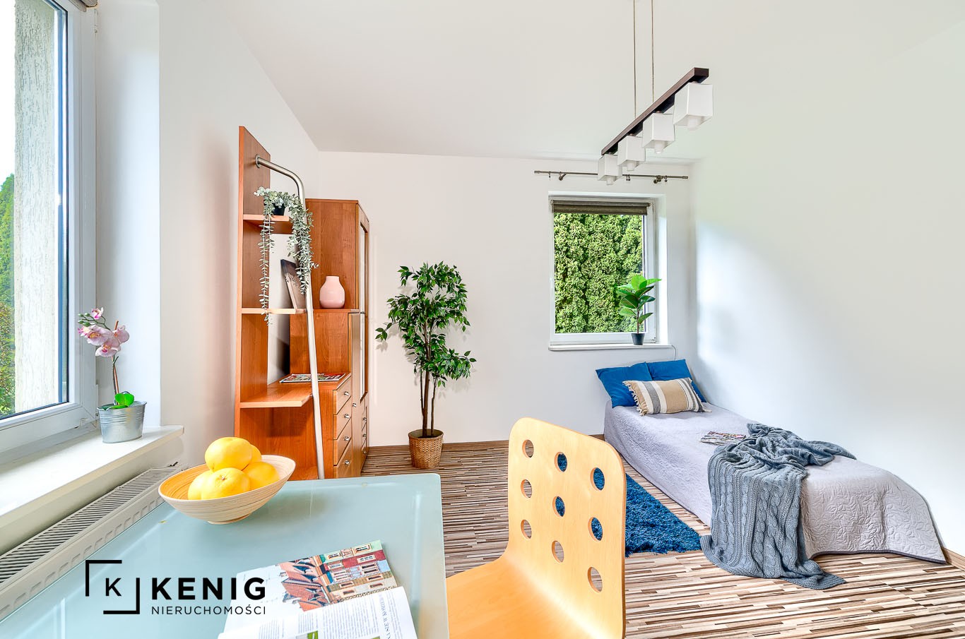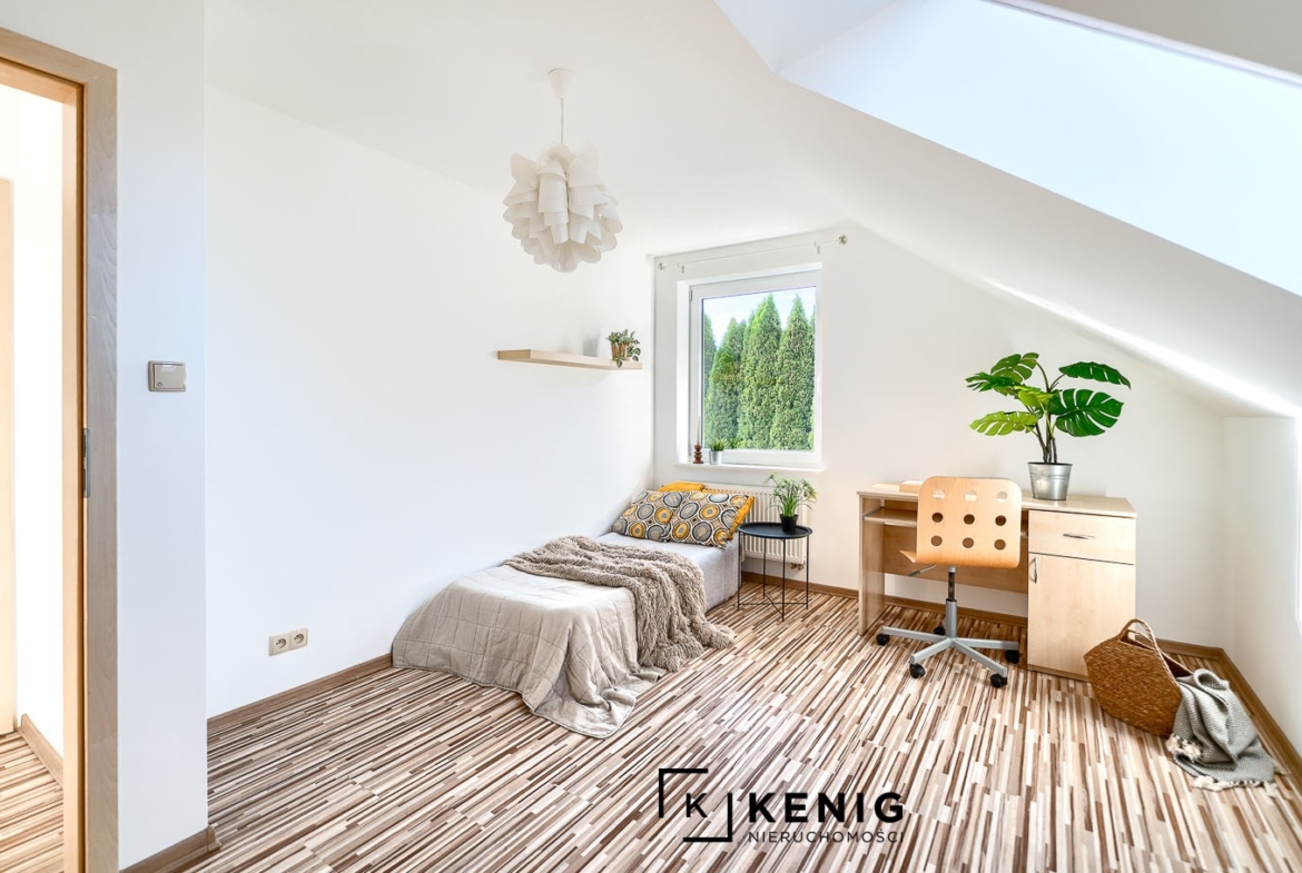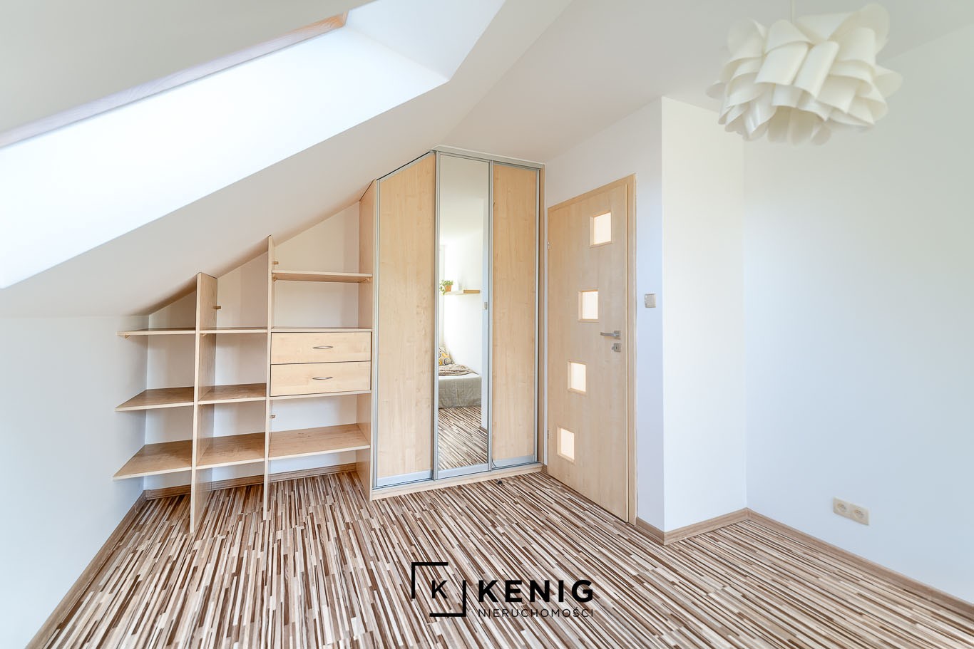 Otoczenie i komunikacja: W sąsiedztwie dominuje zabudowa jednorodzinna. Dom znajduje się blisko szkoły podstawowej (kilka minut spacerem), przedszkola czy boiska sportowego “Orlik”, z zewnętrzną siłownią. Niedaleko jest także przystanek autobusowy, skąd starsze dzieci mogą dojechać do szkół średnich w Kętach