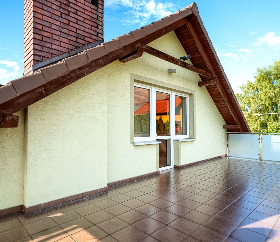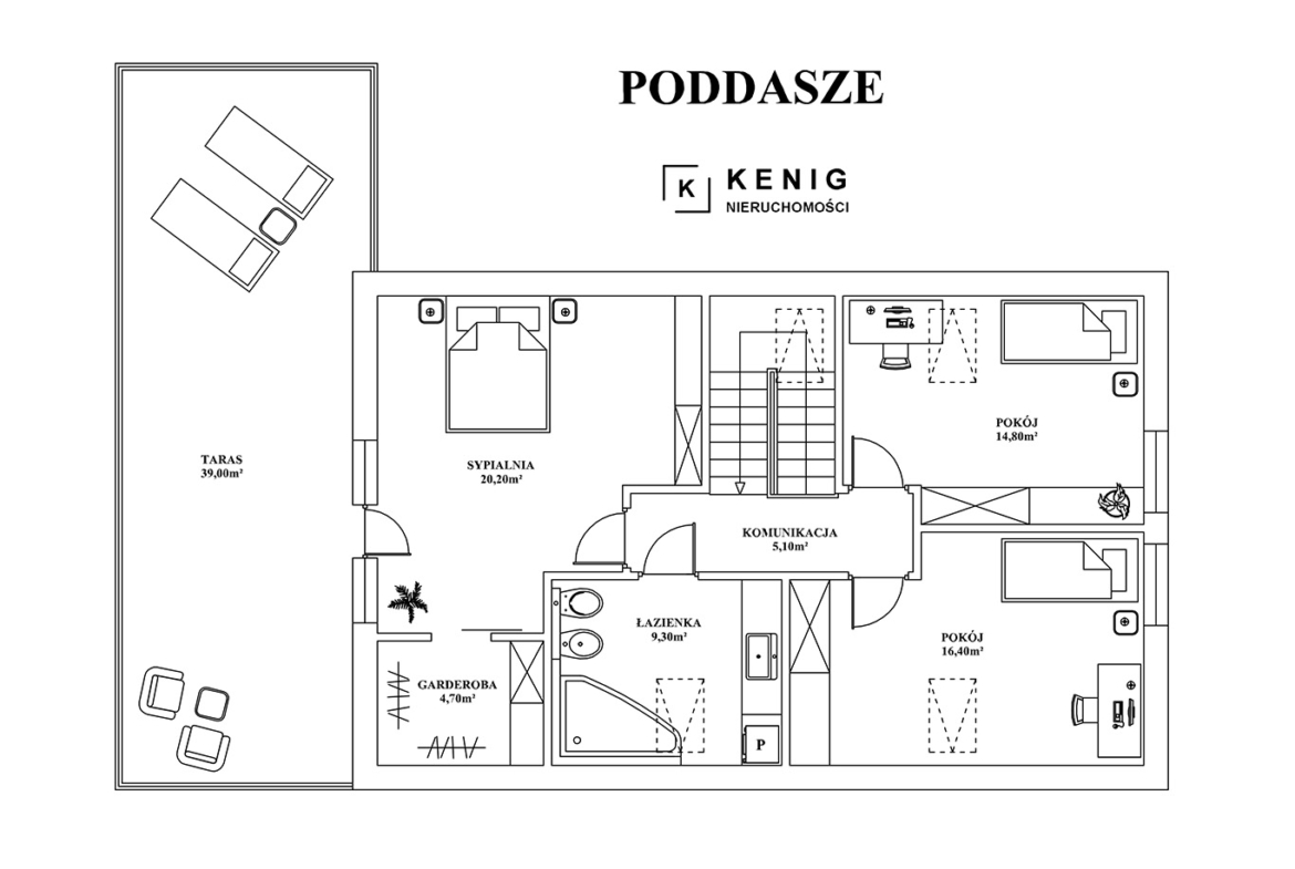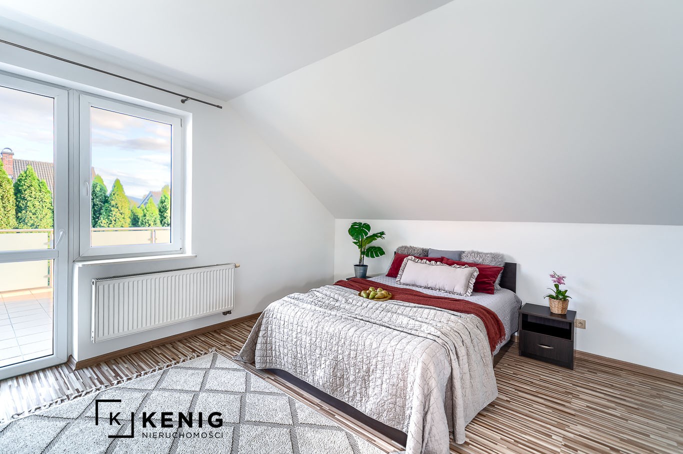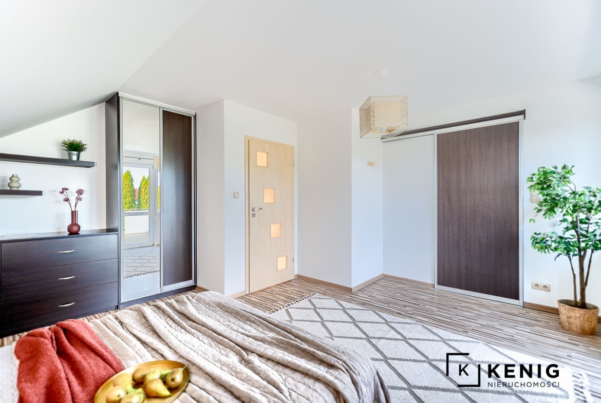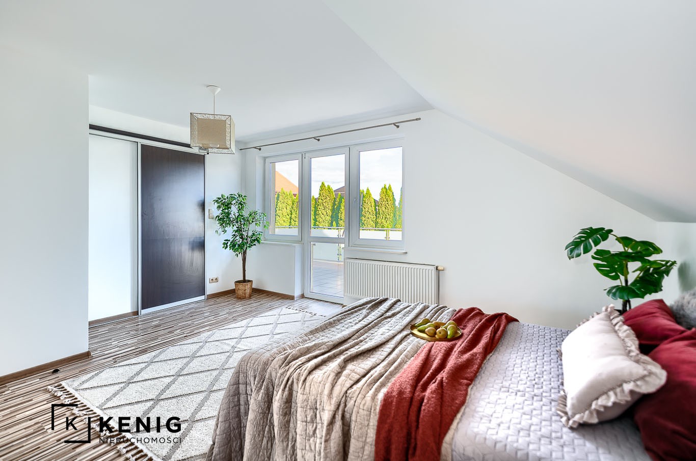 Na piętrze znajduje się ogromna małżeńska sypialnia z garderobą oraz wyjściem na jeszcze większy taras