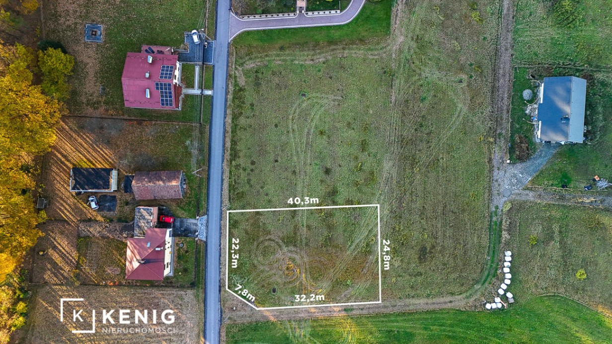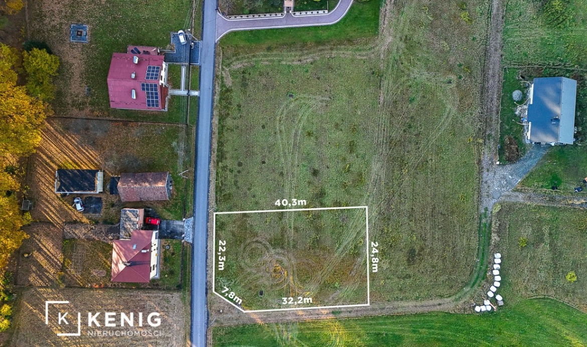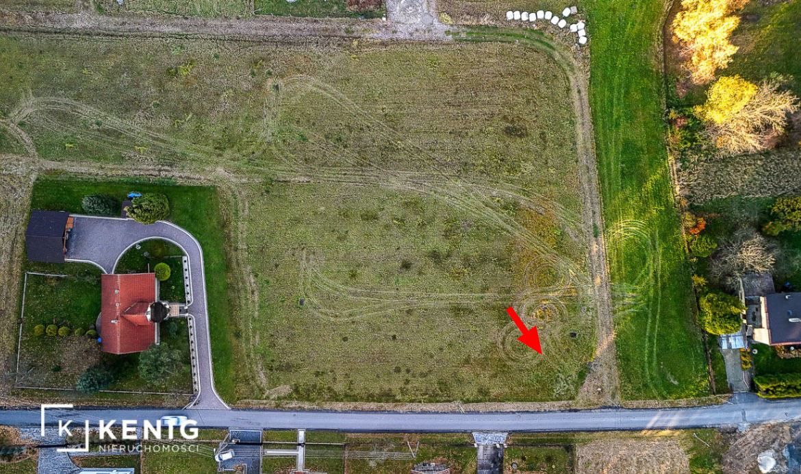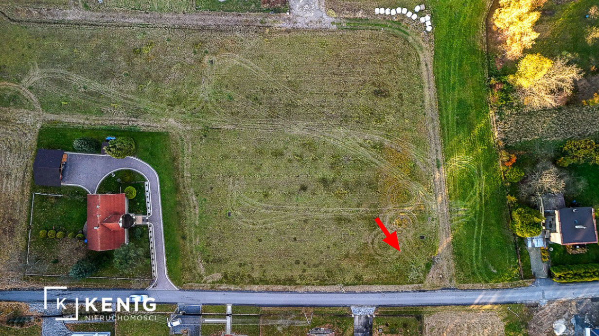 Teren i dojazd: Działka jest stosunkowo płaska, nieogrodzona. Zjazd bezpośrednio z asfaltowej drogi gminnej, od strony południowej.