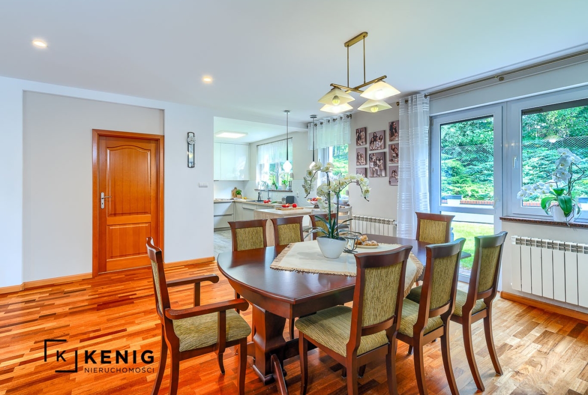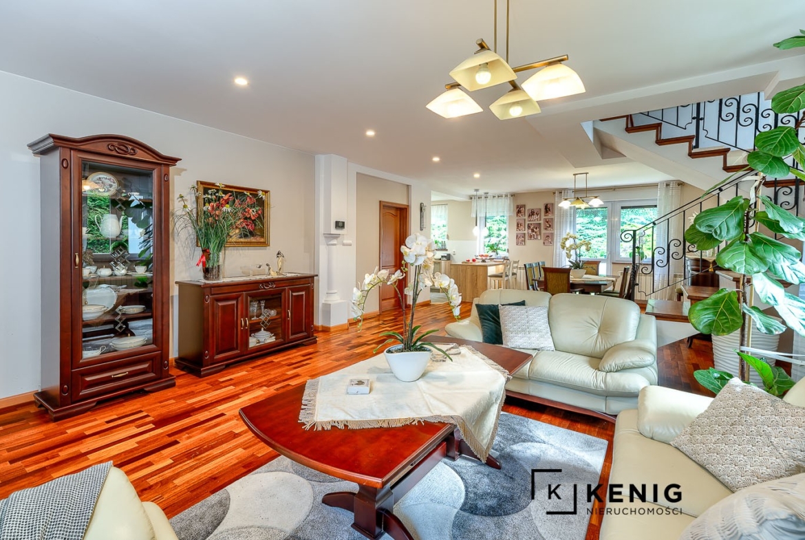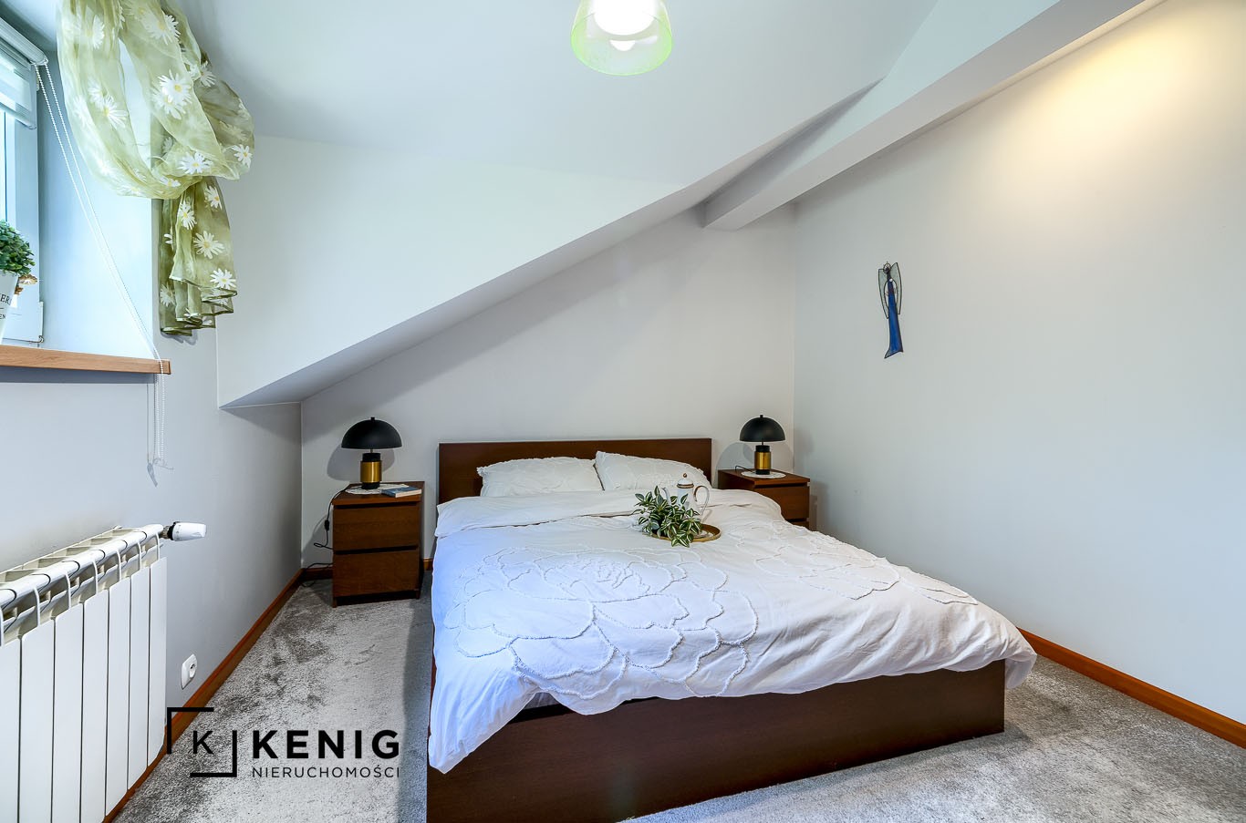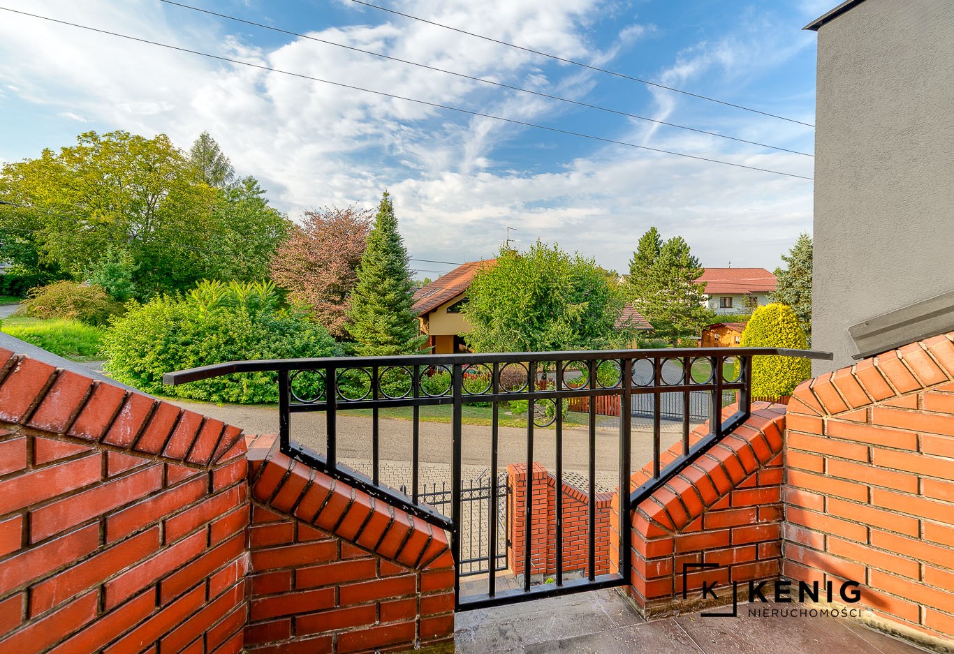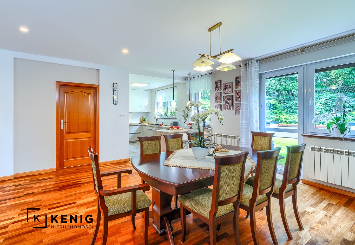 Technologia budowy i stan techniczny: Budynek powstał w 2005 roku. Dach jest wielospadowy, pokryty dachówką cementową w kolorze grafitowym, firmy Braas. Ściany zewnętrzne z pustaka ceramicznego Max (30cm), ocieplone styropianem (10cm), tynk w jasnej kolorystyce. Poddasze użytkowe ocieplone wełną mineralną o grubości 25 cm. Strop gęstożebrowy Ackermana, zapewniający doskonałą izolację akustyczną między kondygnacjami. Okna i drzwi balkonowe PVC. Drzwi wewnętrzne – fornir drewniany. Wszystkie instalacje nowej generacji – elektryczna, centralnego ogrzewania (miedź) i wod.-kan., a także nowy kocioł c.o. z 2025r. (piec gazowy marki Vaillant) z wbudowanym zasobnikiem c.w.u. Instalacja alarmowa. Klimatyzator na klatce schodowej. Na podłogach części dziennej (salon i jadalnia) oraz przedpokoju na poddaszu – parkiet z drewna doussie (bardzo twarde, odporne na ścieranie i wilgoć), w pokojach na poddaszu – wykładziny dywanowe, a w kuchni, łazienkach i wiatrołapie – płytki ceramiczne. Na ścianach gładzie gipsowe.