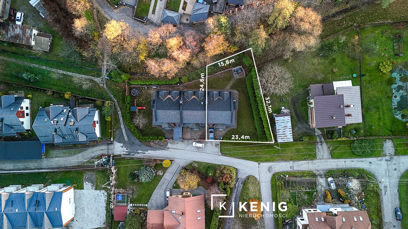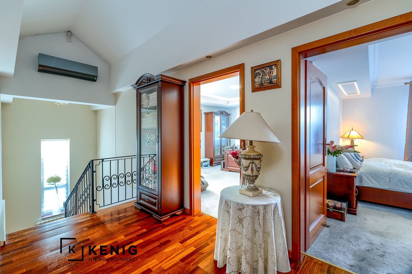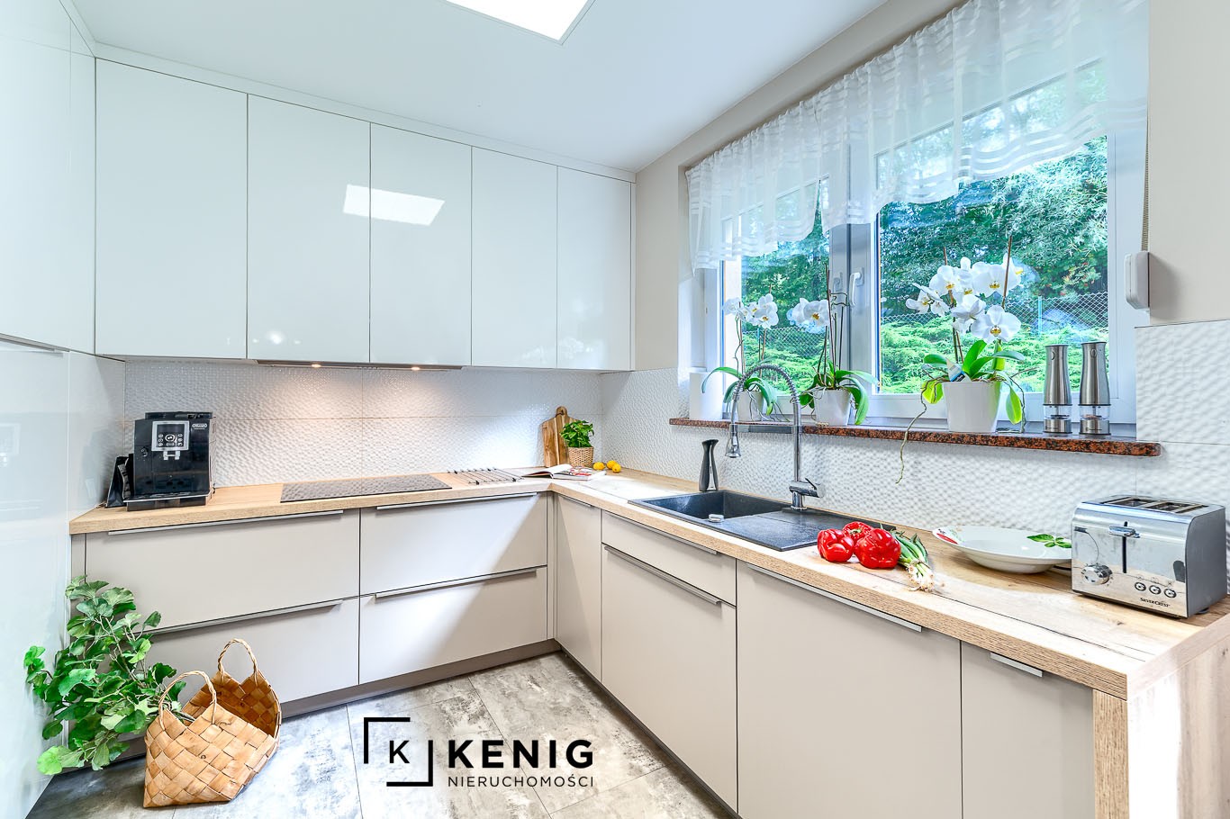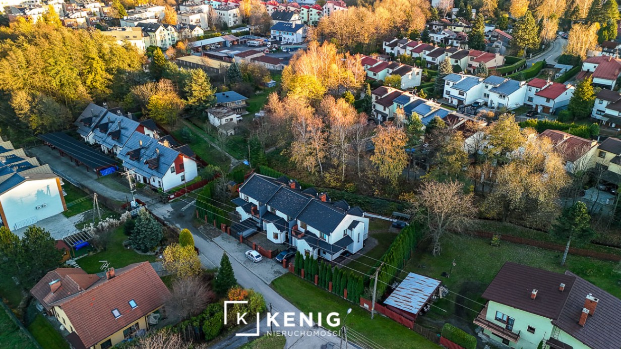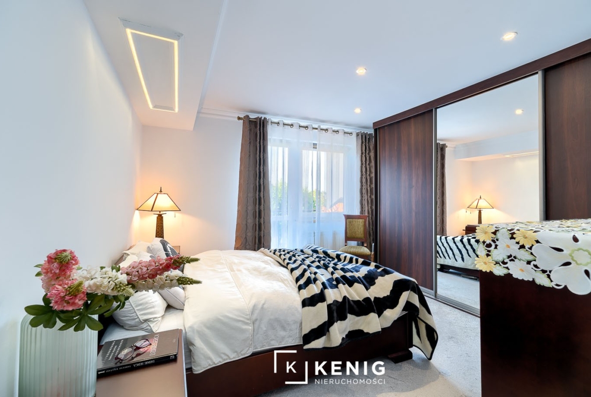 Technologia budowy i stan techniczny: Budynek powstał w 2005 roku. Dach jest wielospadowy, pokryty dachówką cementową w kolorze grafitowym, firmy Braas. Ściany zewnętrzne z pustaka ceramicznego Max (30cm), ocieplone styropianem (10cm), tynk w jasnej kolorystyce. Poddasze użytkowe ocieplone wełną mineralną o grubości 25 cm. Strop gęstożebrowy Ackermana, zapewniający doskonałą izolację akustyczną między kondygnacjami. Okna i drzwi balkonowe PVC. Drzwi wewnętrzne – fornir drewniany. Wszystkie instalacje nowej generacji – elektryczna, centralnego ogrzewania (miedź) i wod.-kan., a także nowy kocioł c.o. z 2025r. (piec gazowy marki Vaillant) z wbudowanym zasobnikiem c.w.u. Instalacja alarmowa. Klimatyzator na klatce schodowej. Na podłogach części dziennej (salon i jadalnia) oraz przedpokoju na poddaszu – parkiet z drewna doussie (bardzo twarde, odporne na ścieranie i wilgoć), w pokojach na poddaszu – wykładziny dywanowe, a w kuchni, łazienkach i wiatrołapie – płytki ceramiczne. Na ścianach gładzie gipsowe.