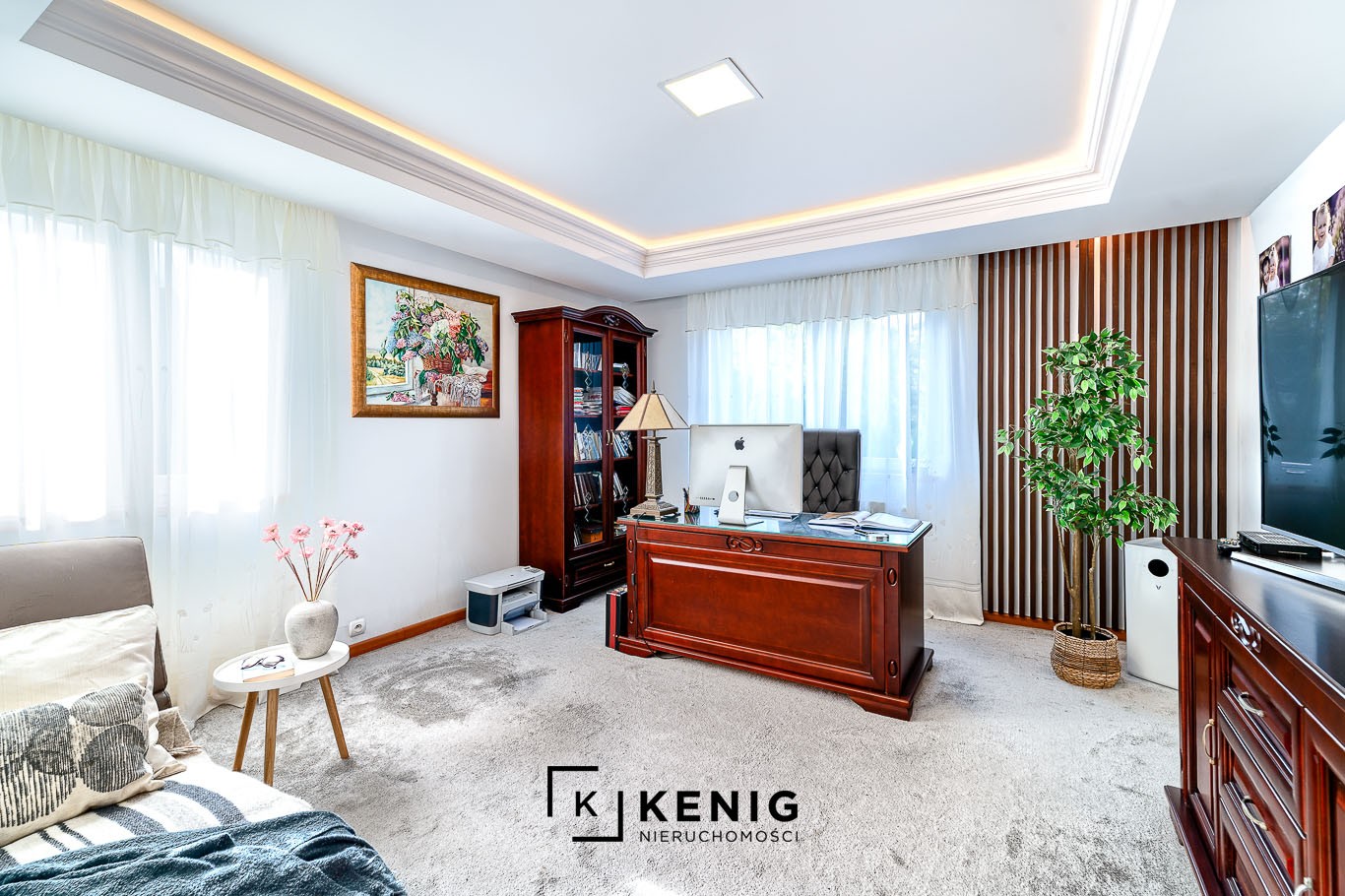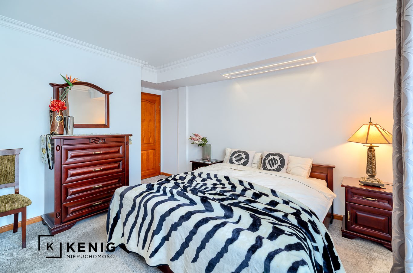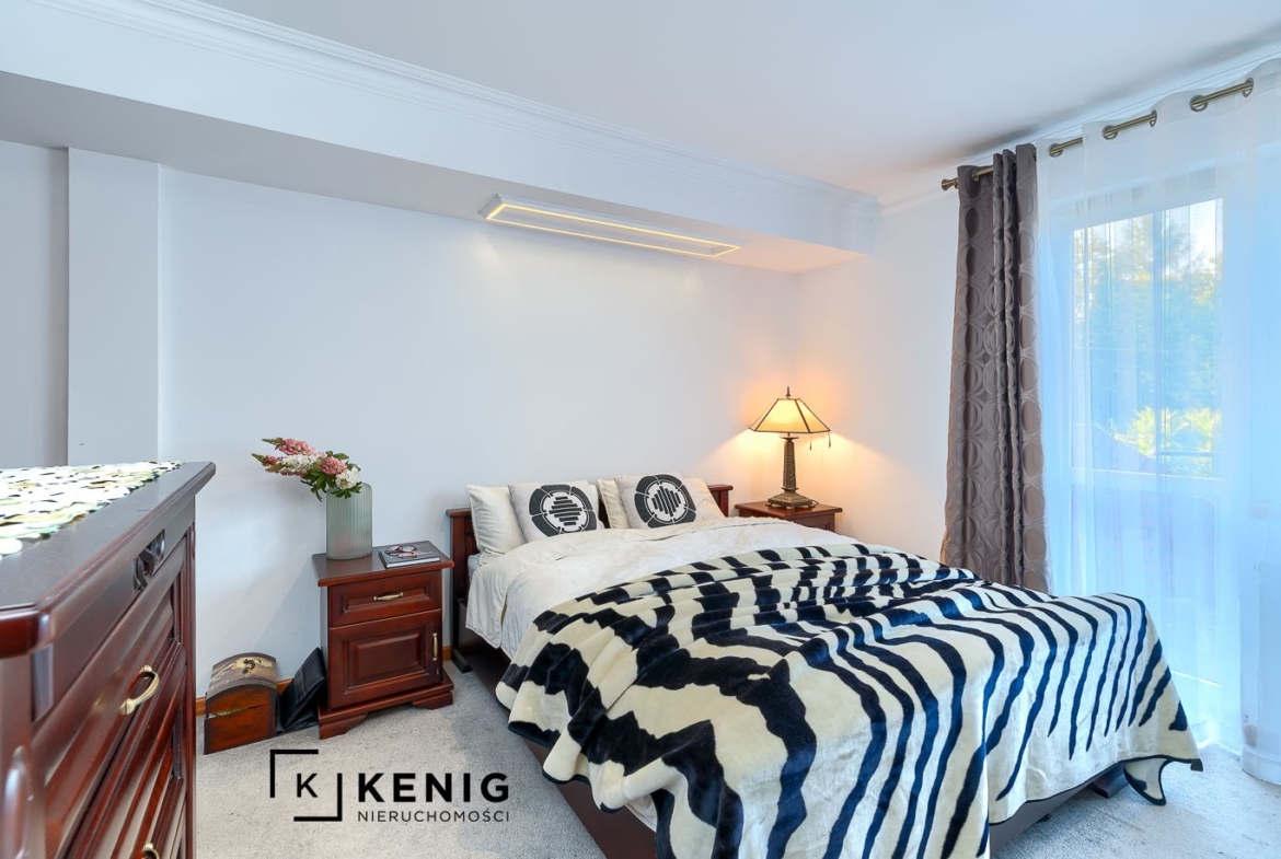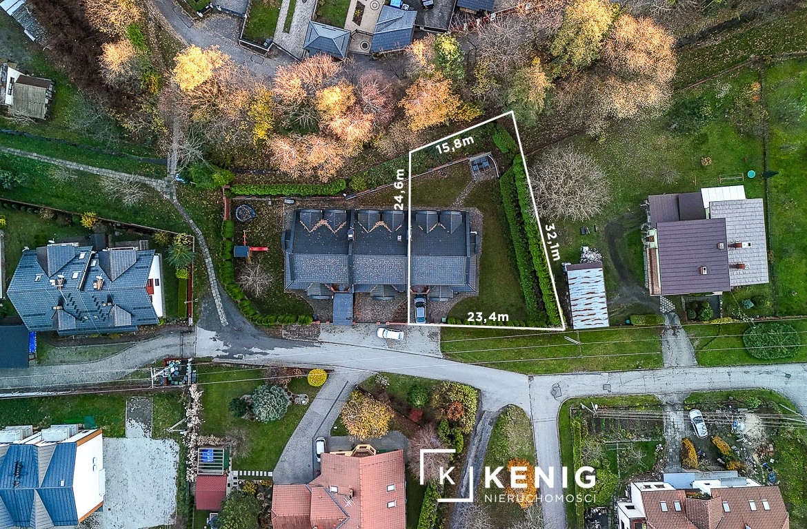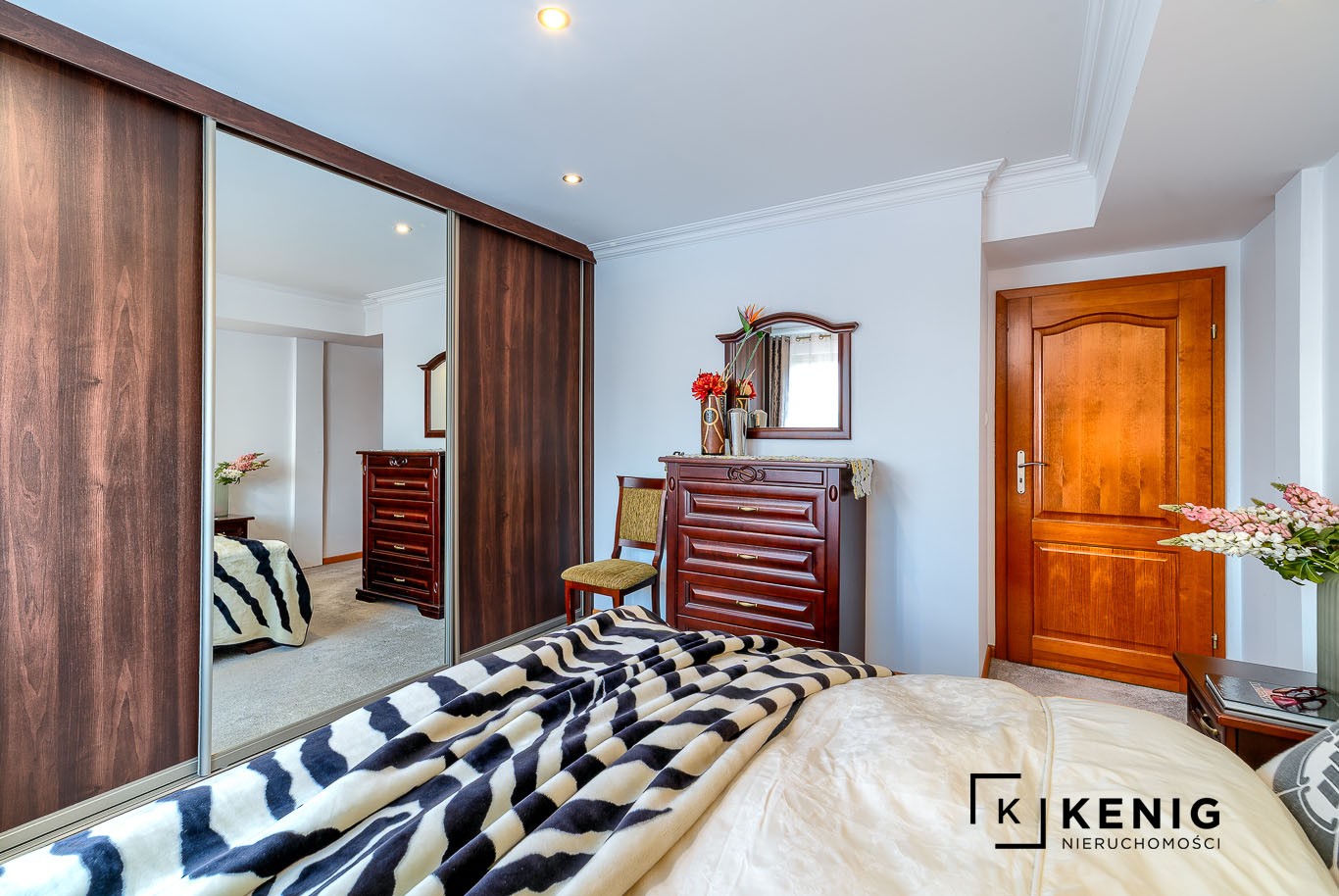 Technologia budowy i stan techniczny: Budynek powstał w 2005 roku. Dach jest wielospadowy, pokryty dachówką cementową w kolorze grafitowym, firmy Braas. Ściany zewnętrzne z pustaka ceramicznego Max (30cm), ocieplone styropianem (10cm), tynk w jasnej kolorystyce. Poddasze użytkowe ocieplone wełną mineralną o grubości 25 cm. Strop gęstożebrowy Ackermana, zapewniający doskonałą izolację akustyczną między kondygnacjami. Okna i drzwi balkonowe PVC. Drzwi wewnętrzne – fornir drewniany. Wszystkie instalacje nowej generacji – elektryczna, centralnego ogrzewania (miedź) i wod.-kan., a także nowy kocioł c.o. z 2025r. (piec gazowy marki Vaillant) z wbudowanym zasobnikiem c.w.u. Instalacja alarmowa. Klimatyzator na klatce schodowej. Na podłogach części dziennej (salon i jadalnia) oraz przedpokoju na poddaszu – parkiet z drewna doussie (bardzo twarde, odporne na ścieranie i wilgoć), w pokojach na poddaszu – wykładziny dywanowe, a w kuchni, łazienkach i wiatrołapie – płytki ceramiczne. Na ścianach gładzie gipsowe.